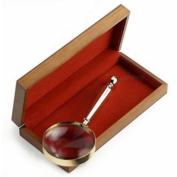 Kartenleselupe Ø 64 mm, mit Messinggriff, in Holzbox 8 x 13 x 3 cm